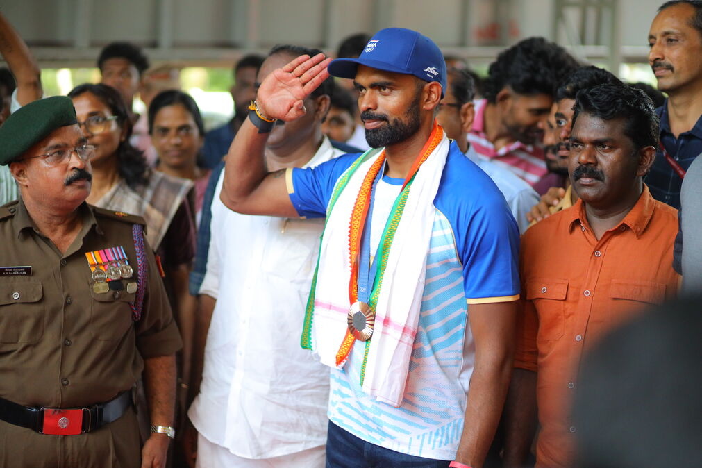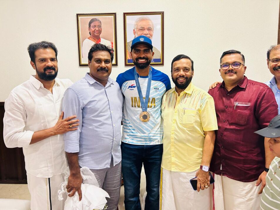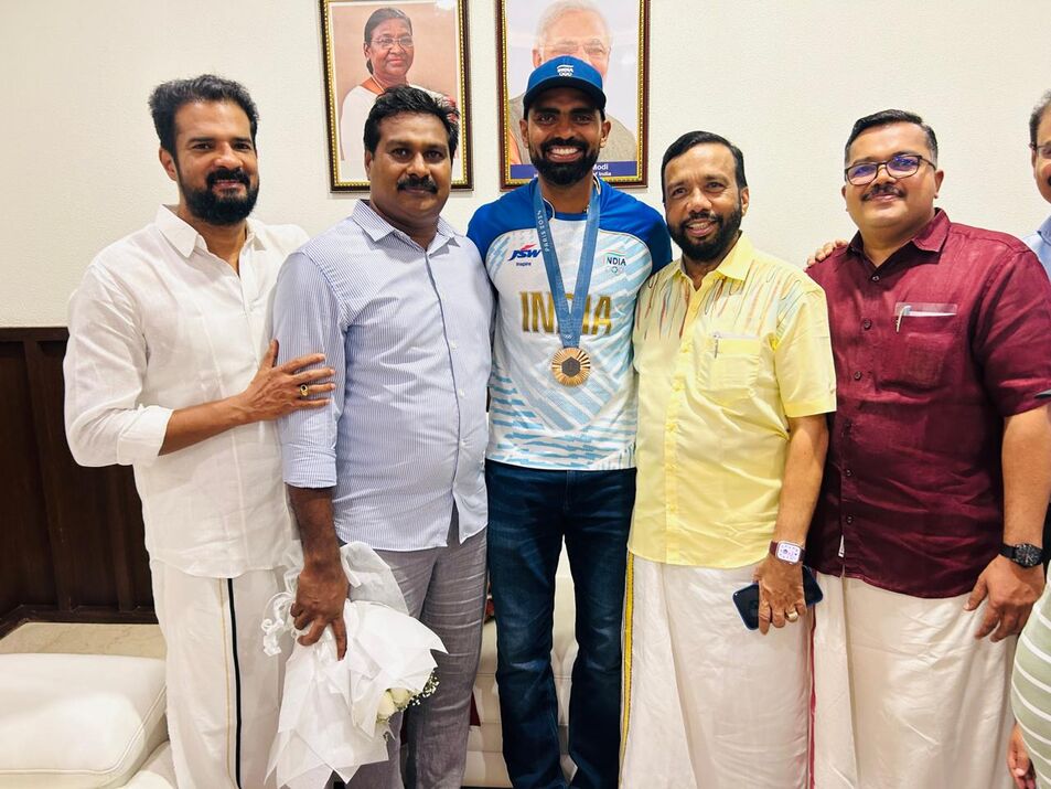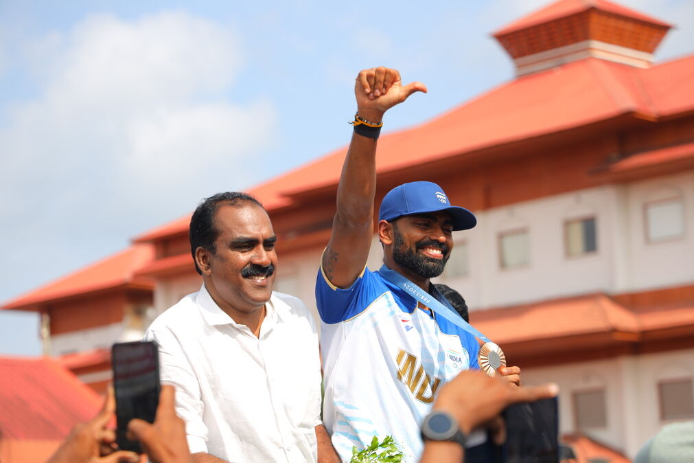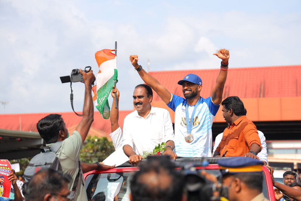 Hockey player P R Sreejesh was accorded a hero’s welcome after his successful Olympics campaign in Paris